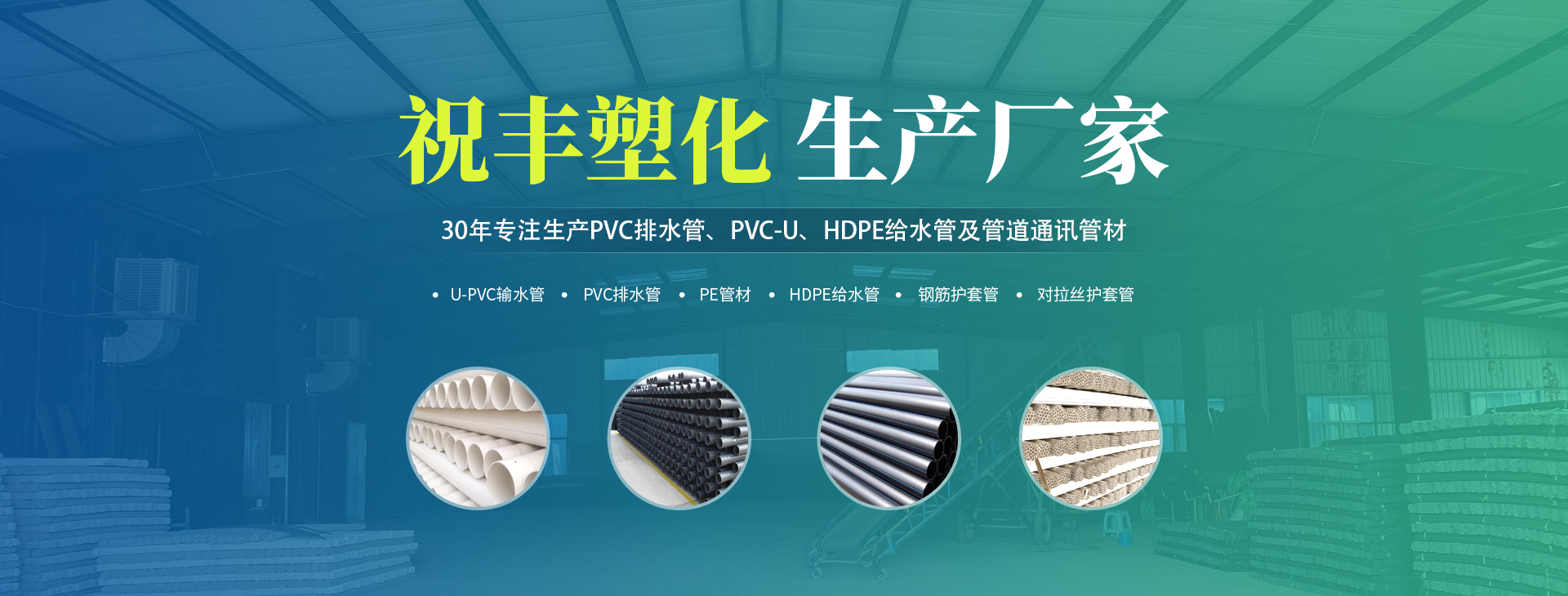 安陽市祝豐塑化有限公司坐落在滑縣工業(yè)園區(qū),東臨大廣高速,西臨京珠高速,是鄭州、鶴壁、安陽、濮陽四個城市的輸紐,交通便利、環(huán)境優(yōu)美。 公司始建于八十年代,經(jīng)過二十余年的艱辛創(chuàng)業(yè),規(guī)模不斷壯大,由十多萬元資產(chǎn)的小廠,發(fā)展到現(xiàn)占地面積達(dá)一萬多平,建筑面積一萬平,資產(chǎn)2000多萬元管材生產(chǎn)企業(yè)。公司生產(chǎn)PVC-U、PVC排水管、HDPE給水管、鋼筋護(hù)套管管道通訊管材等產(chǎn)品,廣泛用于農(nóng)田節(jié)水、高山引水、人畜用水、建筑、電力通訊等多種用途,品種齊全。為了滿足用戶需求,可承攬各種給水、節(jié)水、灌溉工程。“祝豐塑化”憑借強(qiáng)勁的實力,優(yōu)良的管理水平?!耙再|(zhì)量求生存,以信譽(yù)求發(fā)展”的原則全力以赴和大家共同塑造美好未來。..